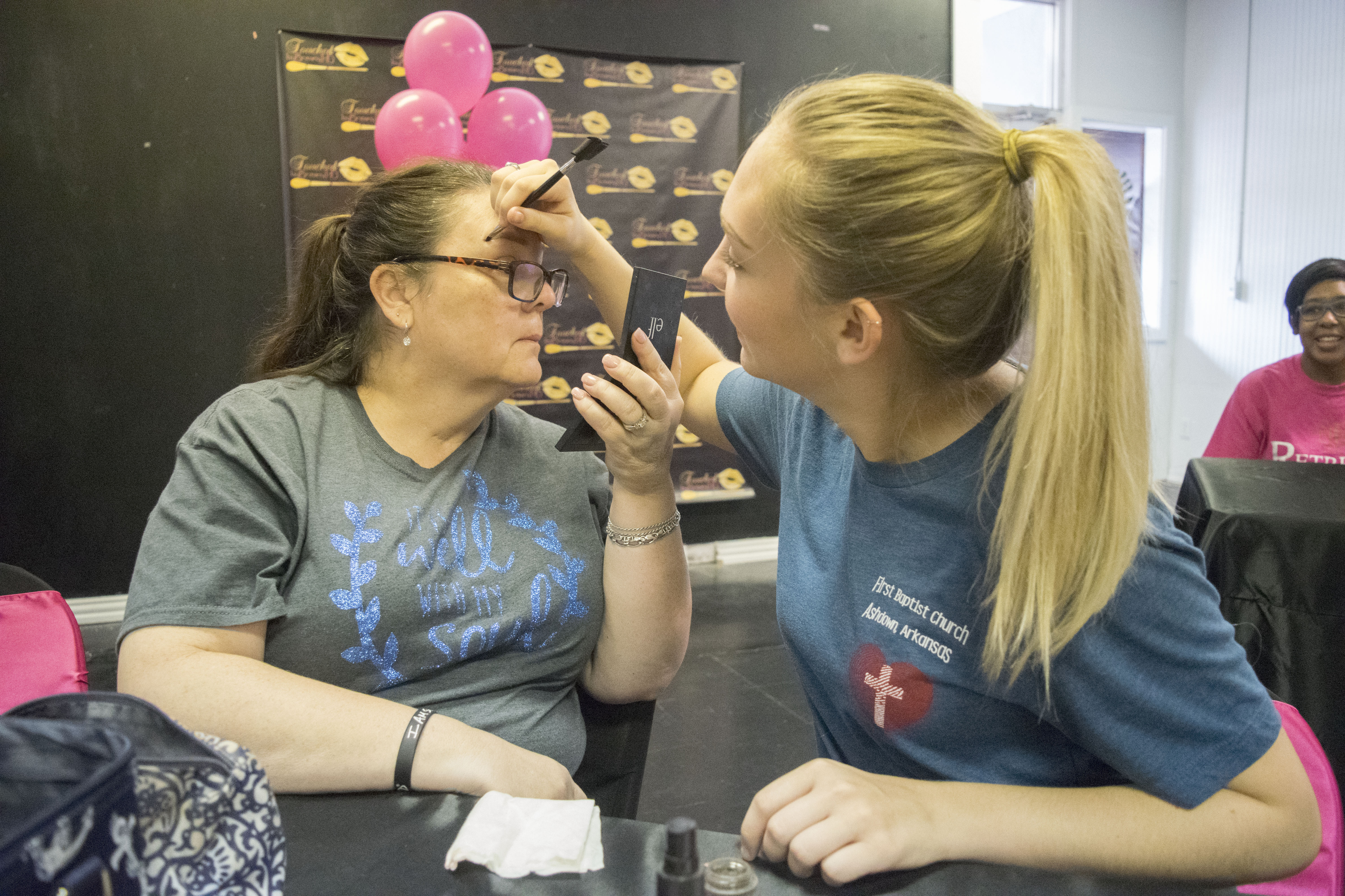 Attendee Camden Teston demonstrates Dawson’s eye brow technique on her mother, LeAnn Teston. Photo Credit: Tiffany Brown
